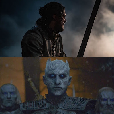 But what’s great about this alternate take is that the trope of Jon being the powerful savior is still being subverted which honors the show’s general nature to surprise audiences by going against cliches. However the Night King’s prowess as a warrior also gets to finally be shown off in a meaningful and impactful manner. The idea here is that is this supernatural entity isn't just some necromancer who can be easily taken out once he doesn't have his waves of zombies to protect him but instead simultaneously an ancient warrior with centuries of tactical knowledge who can take on the best of whatever humanity has to offer. The only other personal inclusions during this segment (the resurrection scene) that I would do would be to have the White Walkers that show up to the castle entrance actually fight our characters.